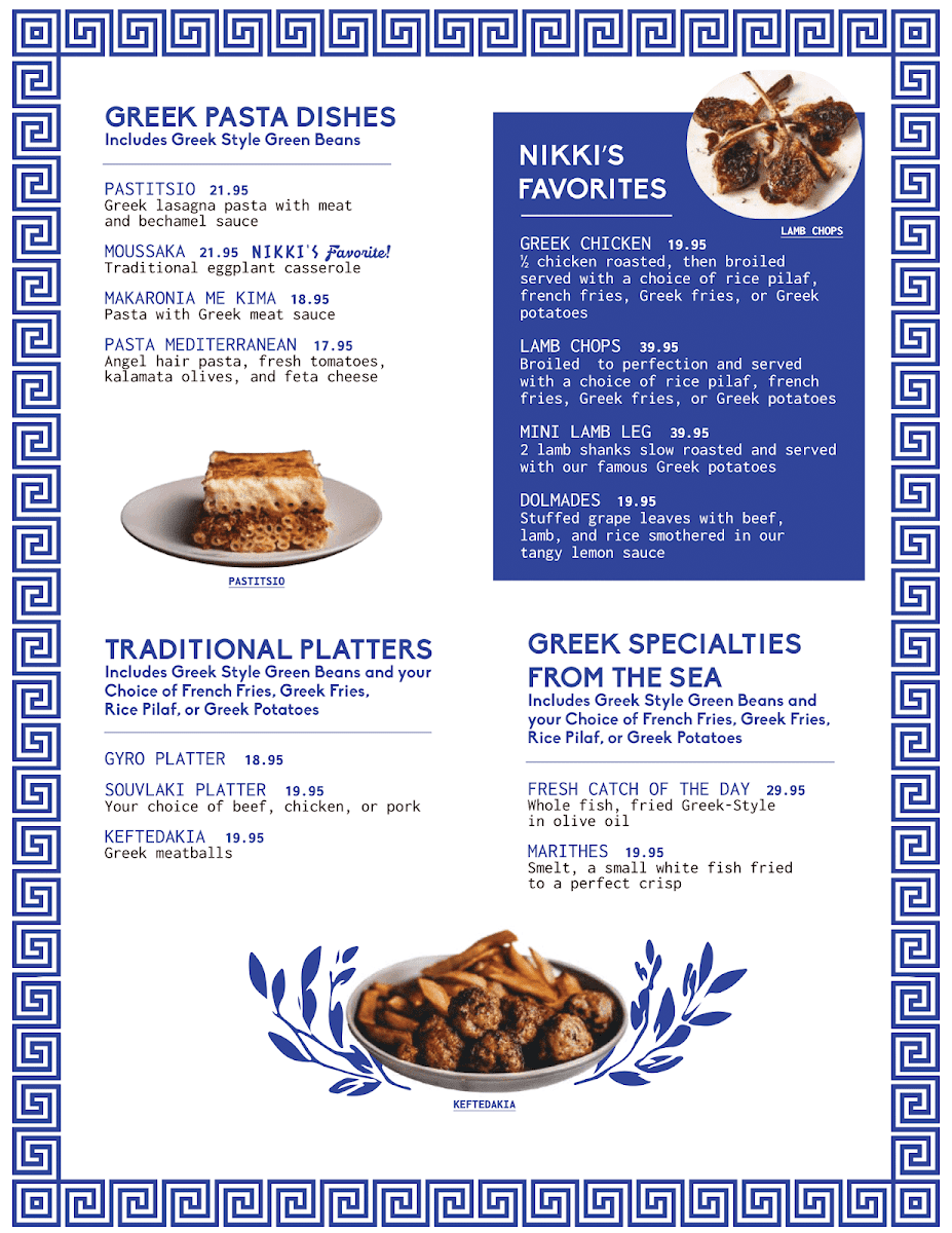 The menu at Nikki’s Greek Cafe offers a harmonious blend of traditional Greek flavors and comforting café-style dishes. Whether you stop by for a casual lunch or an early dinner, you’ll find a variety of options that satisfy both simple cravings and more indulgent tastes. From classic spreads like tzatziki and hummus served with warm pita to hearty sandwiches such as gyros and souvlaki, the menu invites a relaxed, approachable dining experience.